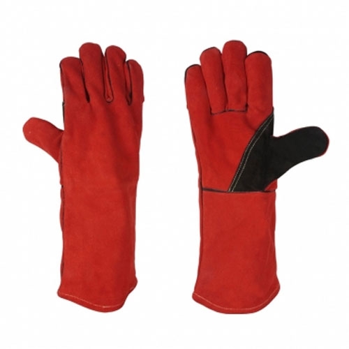 Palm & Top Made of Red Cow Split Leather, Wing Thumb, Reinforcement on Palm, Thumb & Finger, with Black Cow Split Leather, Black Welts on Seems, One Piece Back, Half Fleece & Half Cotton Lining, Size : L, XL, XXL Colour : Red, Green, Blue, Yellow, White, Black, Orange