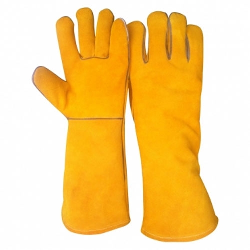Palm & Top Made of Yellow Cow Split Leather, Wing Thumb, Black Welts on Seems, One Piece Back, Half Fleece & Half Cotton Lining