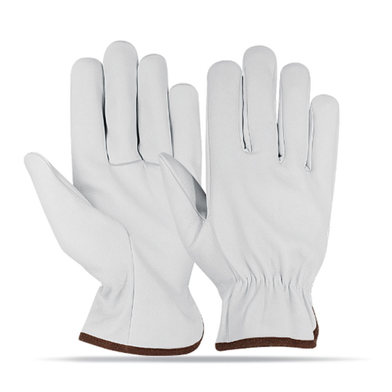 Leather: Goatskin / Sheepskin leather Colour: Natural Thumb: Straight thumb Additional: Shirred elastic back cotton hem